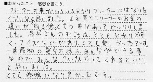 中学1年生への講演終了後のアンケート その8