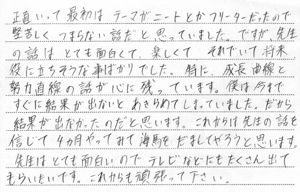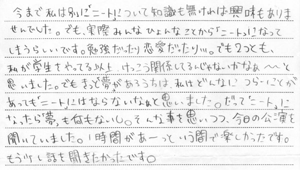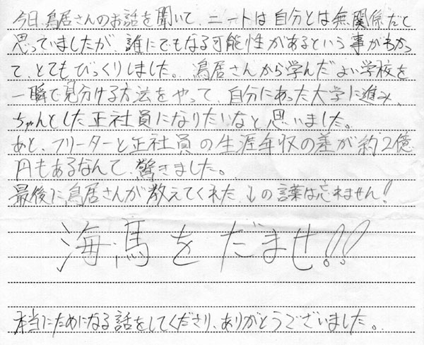 高校1年生への講演終了後のアンケート その2