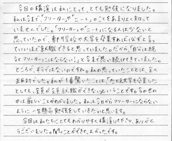 高校1年生への講演終了後のアンケート その6